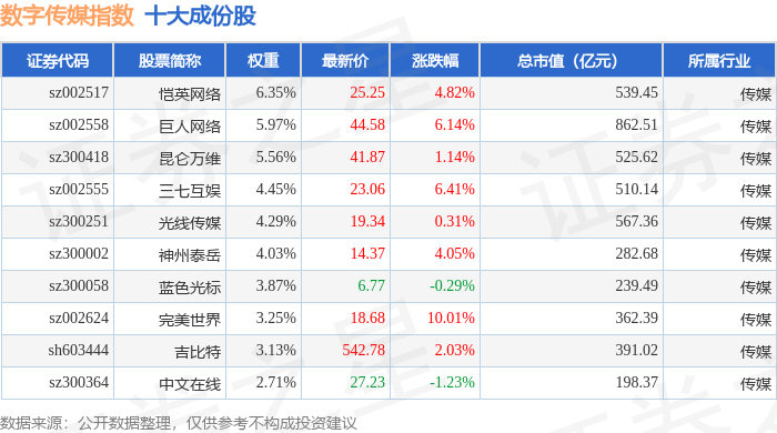 资金流向方面,数字传媒(399434)指数成份股当日主力资金净流入合计5.05亿元,游资资金净流出合计1.52亿元,散户资金净流出合计3.53亿元。成份股资金流向详情见下表: