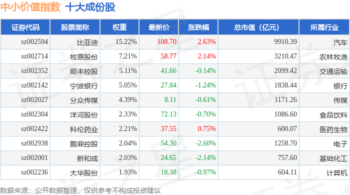 证券之星消息,9月15日,中小价值(399604)指数报收于2049.69点,涨0.6%,成交597.52亿元,换手率1.63%。当日该指数成份股中,上涨的有45家,天康生物以8.2%的涨幅领涨,下跌的有53家,东方铁塔以3.16%的跌幅领跌。