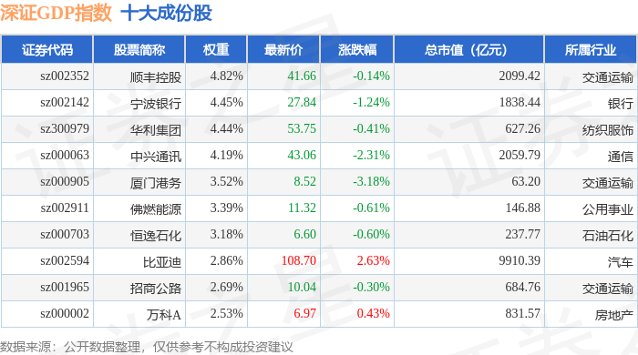 深证GDP(399648)指数十大成份股详情如下: