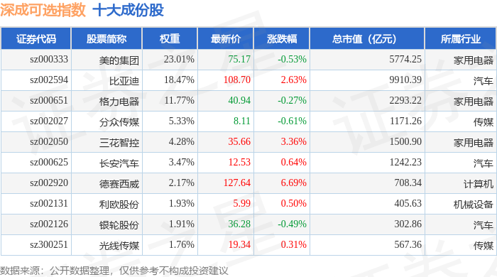 证券之星消息,9月15日,深成可选(399683)指数报收于1925.15点,涨0.95%,成交622.94亿元,换手率3.48%。当日该指数成份股中,上涨的有25家,万向钱潮以10.05%的涨幅领涨,下跌的有21家,四川九洲以1.39%的跌幅领跌。