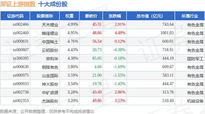 证券之星消息,9月15日,深证上游(399704)指数报收于5547.24点,涨0.19%,成交584.62亿元,换手率3.57%。当日该指数成份股中,上涨的有20家,中材科技以4.84%的涨幅领涨,下跌的有30家,国际复材以5.28%的跌幅领跌。