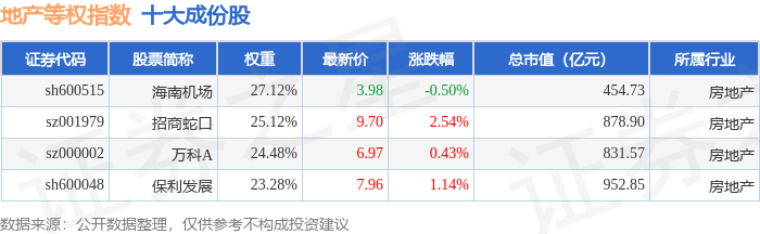 证券之星消息,9月15日,地产等权(399983)指数报收于2232.61点,涨0.88%,成交47.67亿元,换手率1.65%。当日该指数成份股中,上涨的有3家,招商蛇口以2.54%的涨幅领涨,下跌的有1家,海南机场以0.5%的跌幅领跌。