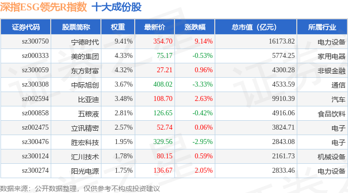 深指ESG领先R(470029)指数十大成份股详情如下: