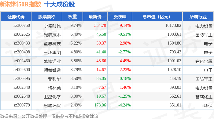 新材料50R(470042)指数十大成份股详情如下: