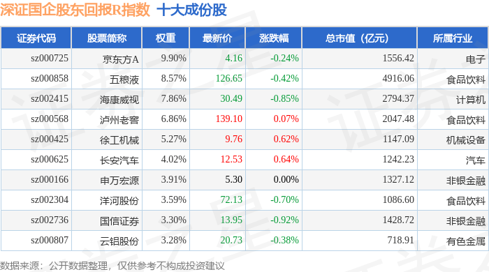 深证国企股东回报R(470064)指数十大成份股详情如下: