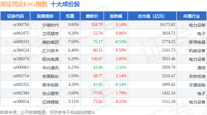深证民企ESG(970056)指数十大成份股详情如下: