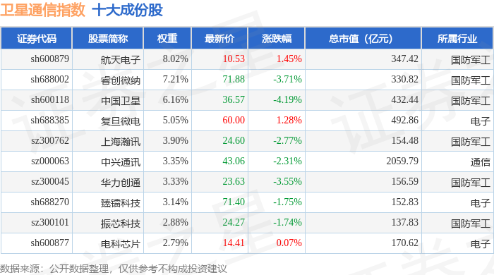 卫星通信(980018)指数十大成份股详情如下: