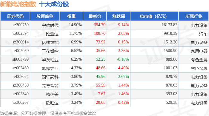 资金流向方面,新能电池(980032)指数成份股当日主力资金净流出合计5.13亿元,游资资金净流出合计7.99亿元,散户资金净流入合计13.13亿元。成份股资金流向详情见下表: