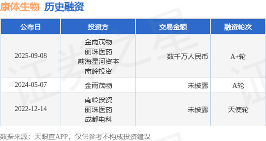 证券之星消息,根据天眼查APP于9月8日公布的信息整理,深圳康体生物医药科技有限公司A+轮融资,融资额数千万人民币,参与投资的机构包括金雨茂物,丽珠医药,前海星河资本,南岭投资。