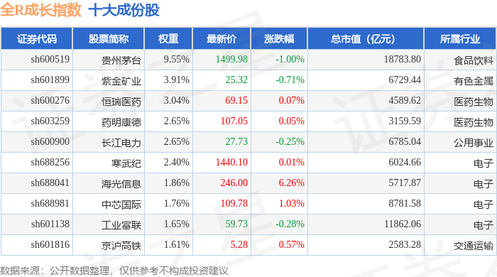 证券之星消息,9月16日,全R成长(000059)指数报收于3304.08点,涨0.28%,成交4621.87亿元,换手率1.6%。当日该指数成份股中,上涨的有192家,龙芯中科以14.89%的涨幅领涨,下跌的有180家,广晟有色以4.68%的跌幅领跌。