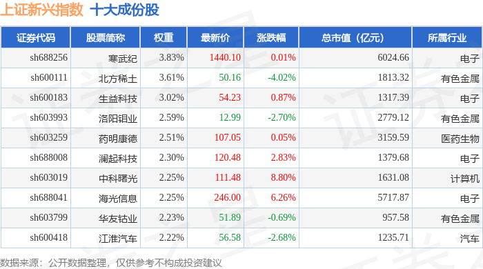 上证新兴(000067)指数十大成份股详情如下: