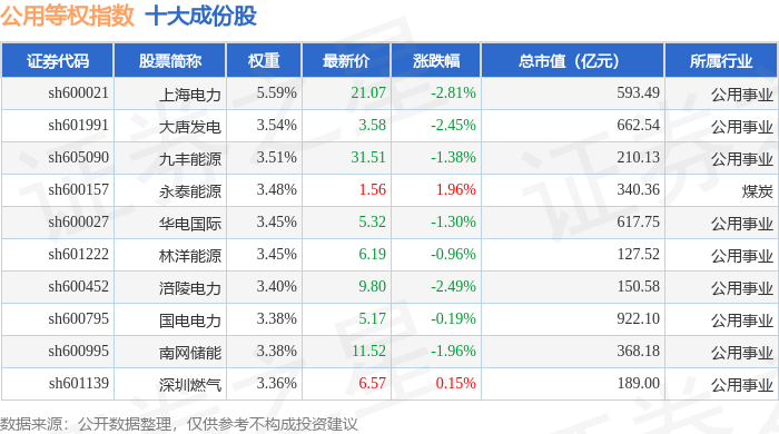 证券之星消息,9月16日,公用等权(000079)指数报收于2523.43点,跌0.98%,成交161.34亿元,换手率1.12%。当日该指数成份股中,上涨的有2家,永泰能源以1.96%的涨幅领涨,下跌的有26家,上海电力以2.81%的跌幅领跌。