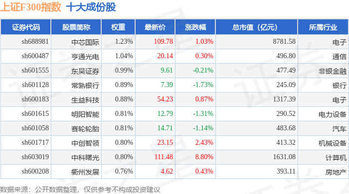 证券之星消息,9月16日,上证F300(000099)指数报收于9014.47点,涨0.53%,成交2094.75亿元,换手率1.56%。当日该指数成份股中,上涨的有153家,首开股份以10.07%的涨幅领涨,下跌的有133家,华光环能以4.92%的跌幅领跌。