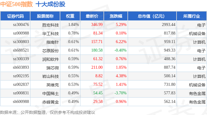 中证500(000905)指数十大成份股详情如下: