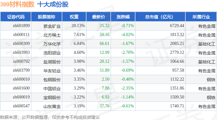 证券之星消息,9月16日,300材料(000909)指数报收于3285.48点,跌1.19%,成交632.96亿元,换手率1.86%。当日该指数成份股中,上涨的有3家,山金国际以1.52%的涨幅领涨,下跌的有28家,北方稀土以4.02%的跌幅领跌。