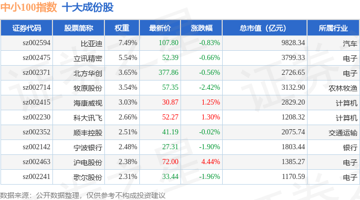 证券之星消息,9月16日,中小100(399005)指数报收于7963.81点,涨0.3%,成交1528.13亿元,换手率1.91%。当日该指数成份股中,上涨的有50家,三花智控以10.01%的涨幅领涨,下跌的有48家,天赐材料以3.15%的跌幅领跌。