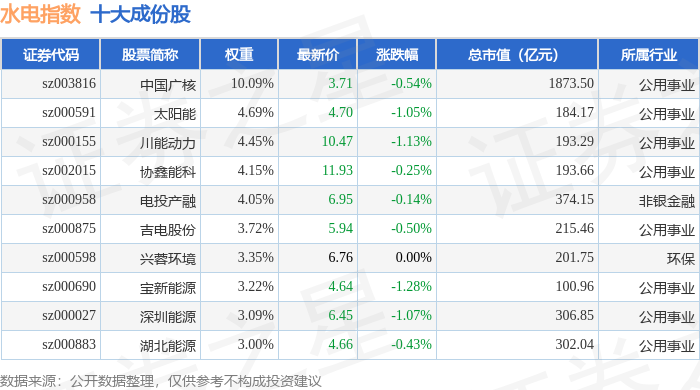 资金流向方面,水电指数(399234)成份股当日主力资金净流出合计3.84亿元,游资资金净流入合计4808.46万元,散户资金净流入合计3.36亿元。成份股资金流向详情见下表:
