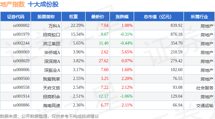 地产指数(399241)十大成份股详情如下:
