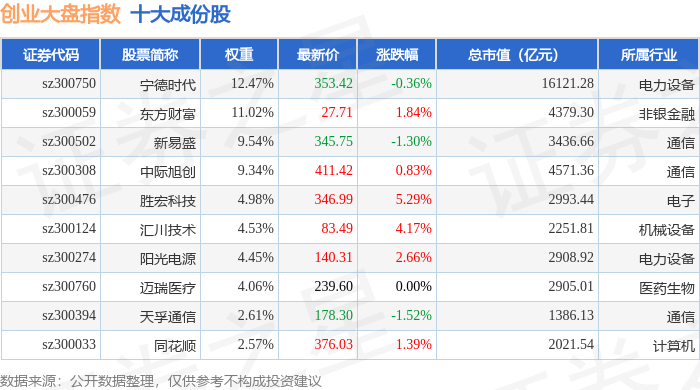 创业大盘(399293)指数十大成份股详情如下: