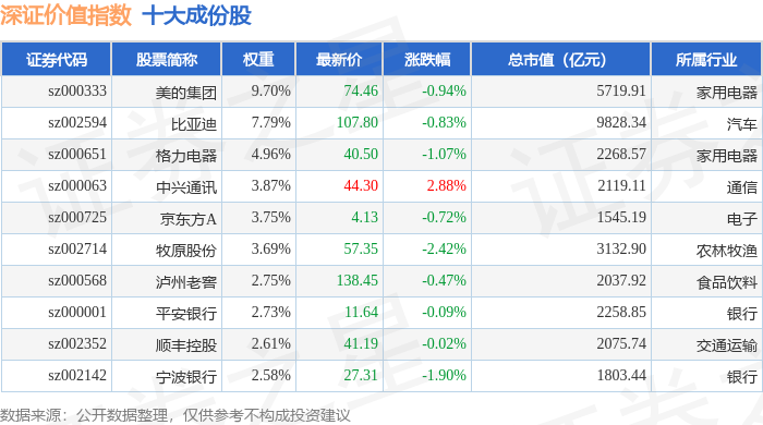 资金流向方面,深证价值(399348)指数成份股当日主力资金净流出合计39.59亿元,游资资金净流入合计10.13亿元,散户资金净流入合计29.45亿元。成份股资金流向详情见下表:
