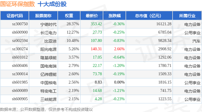 国证环保(399358)指数十大成份股详情如下: