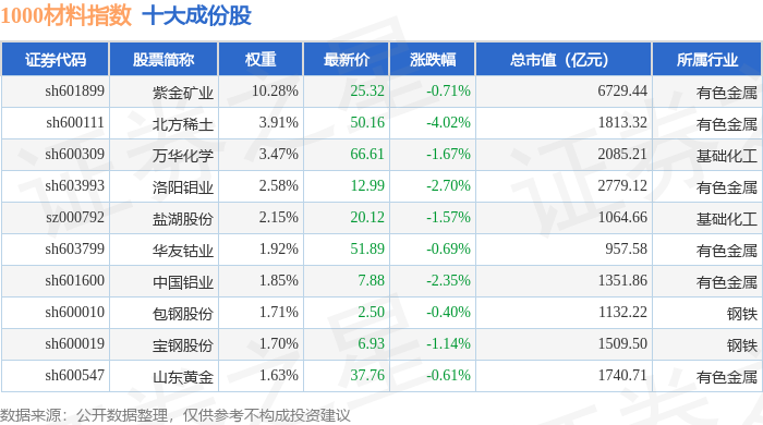 证券之星消息,9月16日,1000材料(399382)指数报收于3172.53点,跌0.87%,成交1365.0亿元,换手率1.96%。当日该指数成份股中,上涨的有39家,东阳光以7.37%的涨幅领涨,下跌的有96家,北方稀土以4.02%的跌幅领跌。