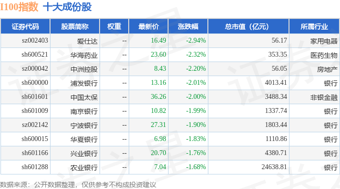 证券之星消息,9月16日,I100(399415)指数报收于7007.86点,涨0.53%,成交715.11亿元,换手率0.4%。当日该指数成份股中,上涨的有48家,省广集团以9.99%的涨幅领涨,下跌的有45家,爱仕达以2.94%的跌幅领跌。
