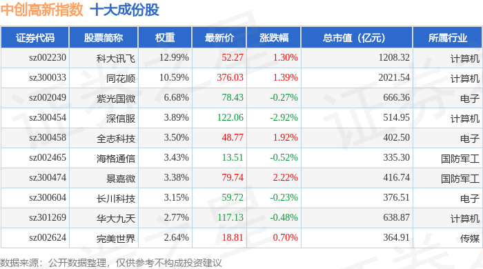 资金流向方面,中创高新(399652)指数成份股当日主力资金净流出合计4.2亿元,游资资金净流入合计7800.21万元,散户资金净流入合计3.42亿元。成份股资金流向详情见下表: