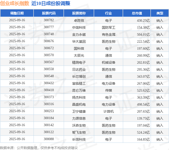 近10日内创业成长(399667)指数成份股做了调整,新纳入了18只股票。