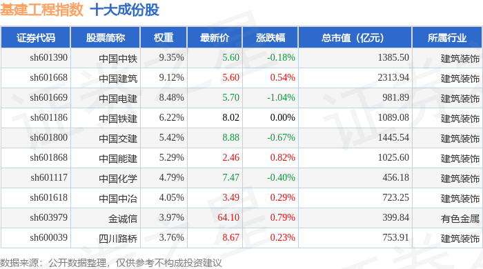 基建工程(399995)指数十大成份股详情如下: