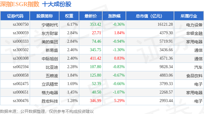 深指ESGR(470026)指数十大成份股详情如下: