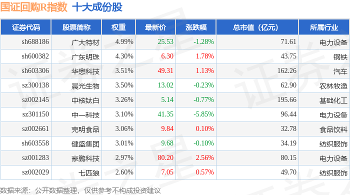 国证回购R(480063)指数十大成份股详情如下: