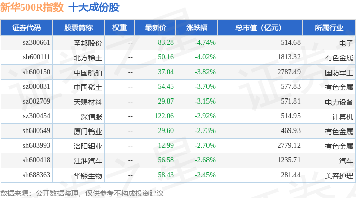 资金流向方面,新华500R(489001)指数成份股当日主力资金净流出合计373.92亿元,游资资金净流入合计109.12亿元,散户资金净流入合计264.79亿元。成份股资金流向详情见下表:
