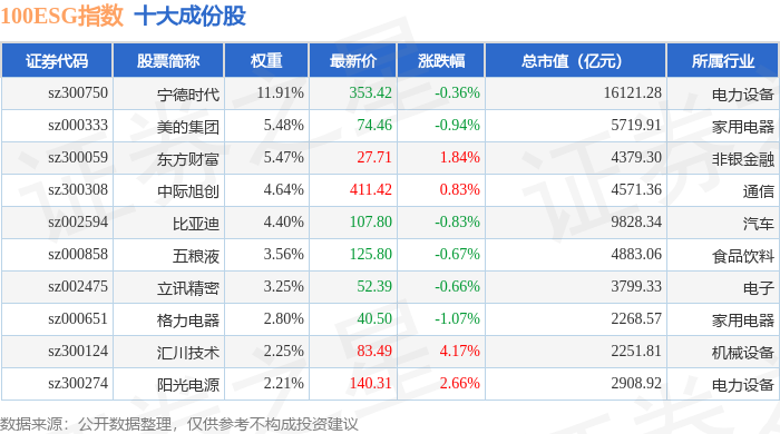 100ESG(970027)指数十大成份股详情如下: