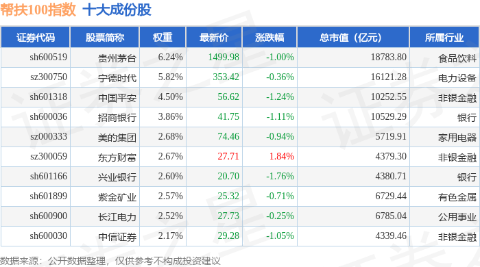 资金流向方面,帮扶100(980065)指数成份股当日主力资金净流出合计164.94亿元,游资资金净流入合计61.63亿元,散户资金净流入合计103.3亿元。成份股资金流向详情见下表: