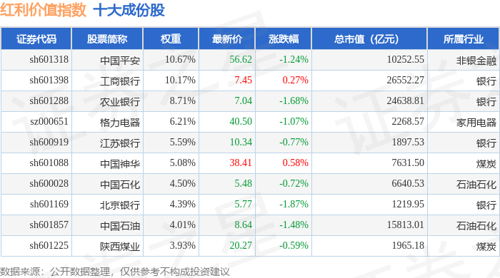 红利价值(980103)指数十大成份股详情如下: