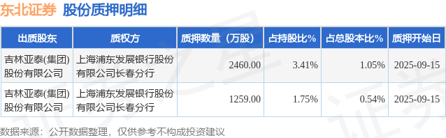 证券之星消息,东北证券(000686)9月17日公开信息显示,股东吉林亚泰(集团)股份有限公司向上海浦东发展银行股份有限公司长春分行合计质押3719.0万股,占总股本1.59%。质押详情见下表: