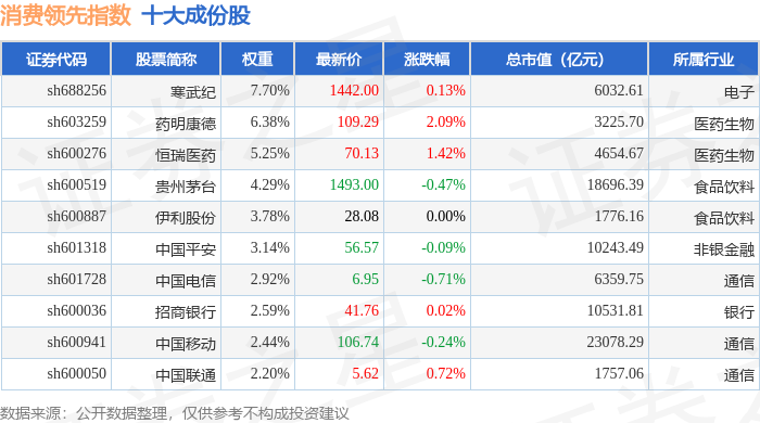 消费领先(000148)指数十大成份股详情如下: