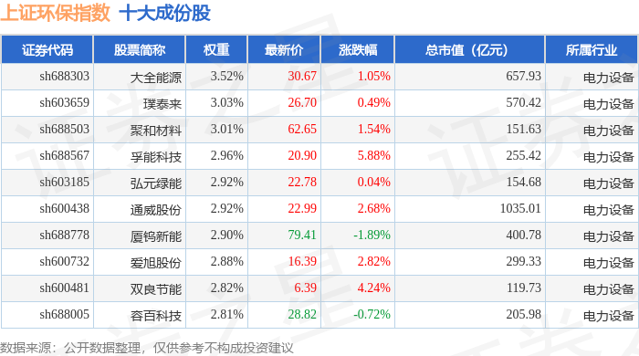 证券之星消息,9月17日,上证环保(000158)指数报收于1328.31点,涨1.64%,成交368.87亿元,换手率1.28%。当日该指数成份股中,上涨的有28家,奥特维以11.25%的涨幅领涨,下跌的有9家,阿特斯以2.56%的跌幅领跌。