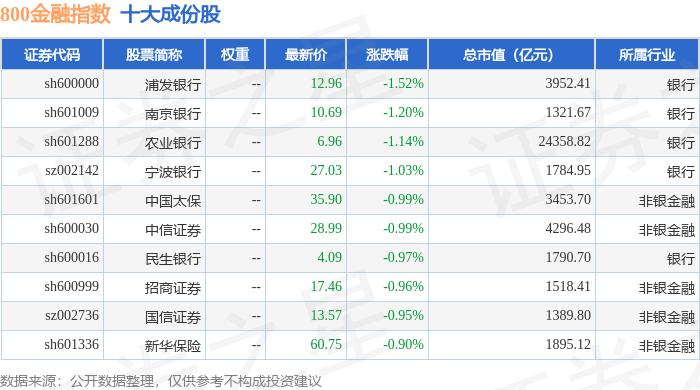 证券之星消息,9月17日,800金融(000974)指数报收于6912.65点,涨0.05%,成交1212.63亿元,换手率0.82%。当日该指数成份股中,上涨的有23家,建元信托以9.91%的涨幅领涨,下跌的有20家,浦发银行以1.52%的跌幅领跌。