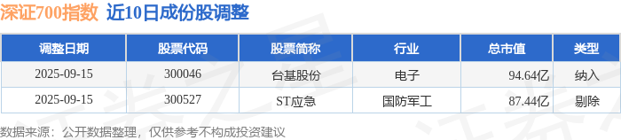 近10日内深证700(399010)指数成份股做了调整,新纳入了1只股票,剔除了1只股票。