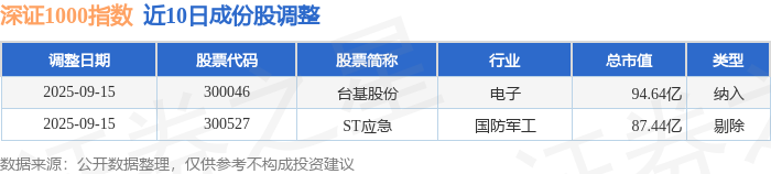 近10日内深证1000(399011)指数成份股做了调整,新纳入了1只股票,剔除了1只股票。