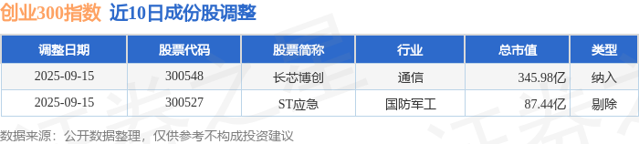 近10日内创业300(399012)指数成份股做了调整,新纳入了1只股票,剔除了1只股票。