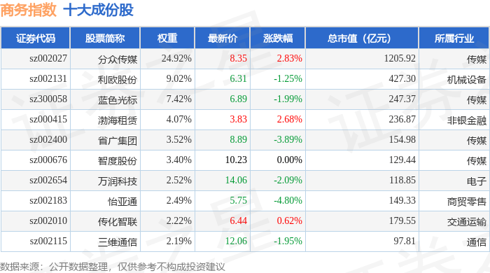 资金流向方面,商务指数(399242)成份股当日主力资金净流出合计30.05亿元,游资资金净流入合计6.51亿元,散户资金净流入合计23.53亿元。成份股资金流向详情见下表: