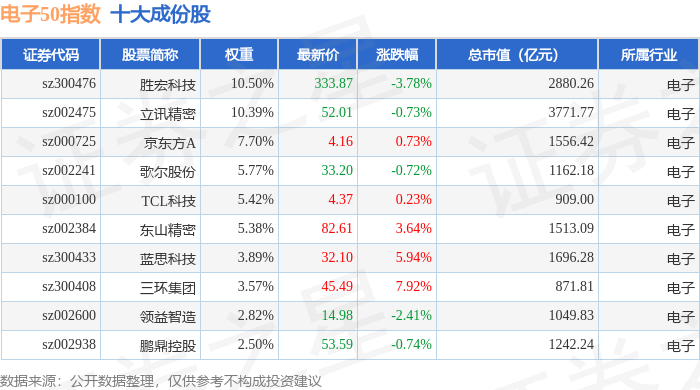 电子50(399281)指数十大成份股详情如下: