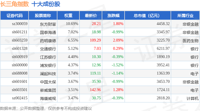 资金流向方面,长三角(399355)指数成份股当日主力资金净流出合计38.22亿元,游资资金净流入合计16.7亿元,散户资金净流入合计21.51亿元。成份股资金流向详情见下表: