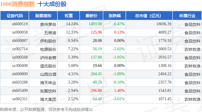 证券之星消息,9月17日,1000消费(399385)指数报收于10300.97点,跌0.6%,成交305.38亿元,换手率1.11%。当日该指数成份股中,上涨的有11家,口子窖以2.98%的涨幅领涨,下跌的有42家,永辉超市以3.19%的跌幅领跌。