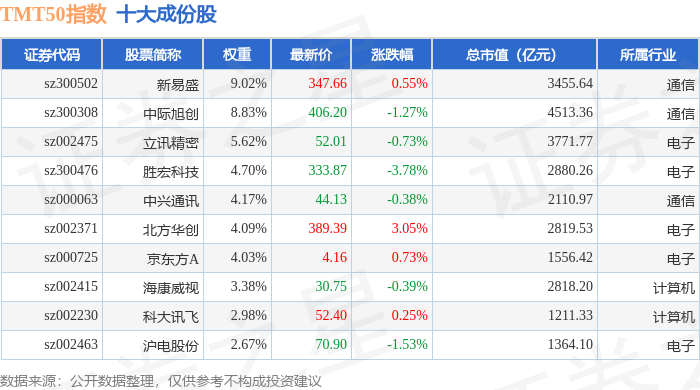 证券之星消息,9月17日,TMT50(399610)指数报收于9158.07点,涨0.6%,成交1913.26亿元,换手率2.53%。当日该指数成份股中,上涨的有25家,指南针以9.62%的涨幅领涨,下跌的有25家,胜宏科技以3.78%的跌幅领跌。