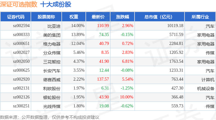 深证可选(399616)指数十大成份股详情如下: