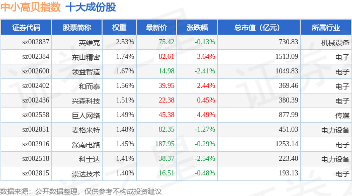 中小高贝(399664)指数十大成份股详情如下: